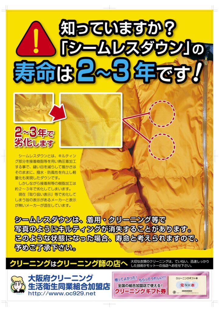 シームレスダウンとはキルティング部分を接着樹脂等を用いて熱圧着加工する事で、縫い目を減らして暖かさはそのままに、撥水・防風性を向上し軽量化も実現したダウンです。しかしながら接着剤等の樹脂加工は約2~3年で劣化してしまいます。 現在「取り扱い表示」等で劣化してしまう旨の表示があるメーカーと表示のないメーカーが混在していますのでご注意ください。